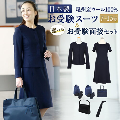 お受験スーツ お受験 ワンピース スーツ 完全日本製 お受験スーツ&選べるお受験面接セット スクエアネックマーメードラインワンピース&ノーカラージャケット 7号/9号/11号/13号/15号 高級国産 ウール100% お受験 卒業式 卒園式 入学式 ママスーツ