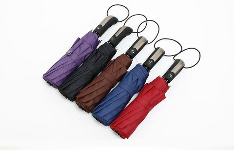 【送料無料】ユニセックス 折りたたみ傘 丈夫 精巧 10本骨 三段階 自動開閉 大きい 23インチ シンプル 無地 防水 撥水 軽量 コンパクト 先端ビーズ ラバーハンドル スチールロッド 梅雨 持ち運び ストラップ付 メンズ レディース 日傘 男女兼用 全5色